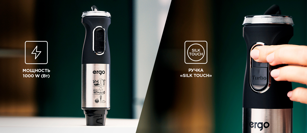 Благодаря погружной конструкции, блендер ERGO EHB 7500 – универсальный кухонный прибор, который имеет широкий спектр функций.